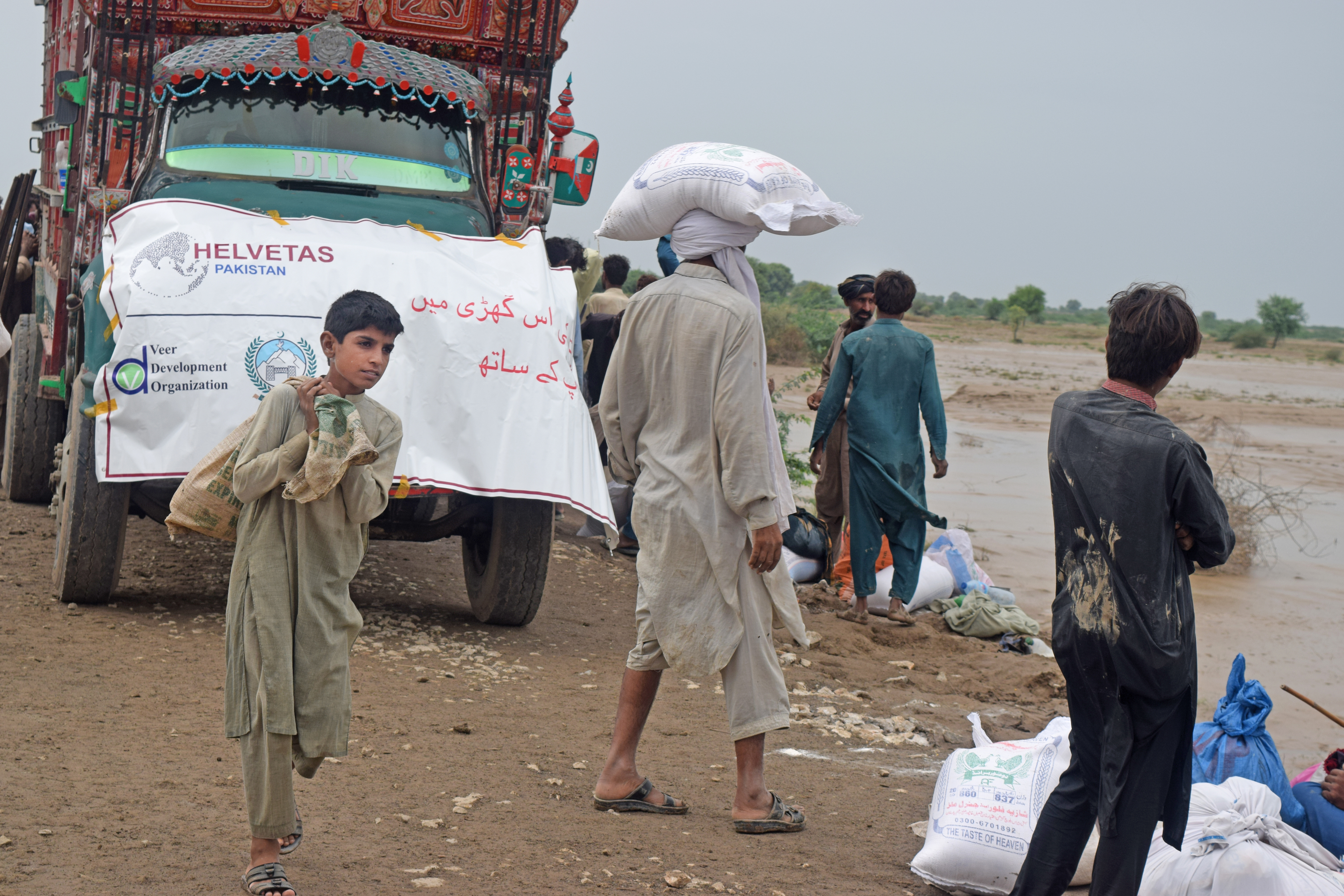 Bereits verloren 1300 Menschen ihr Leben, hunderttausende Nutztiere ertranken in den Fluten, 1,5 Millionen Häuser wurden beschädigt und zwei Millionen Hektar Ackerland wurden überschwemmt. Helvetas, die Schweizer Organisation für Entwicklungszusammenarbeit und Humanitäre Hilfe, die seit 40 Jahren in Pakistan tätig ist, leistet vor Ort Nothilfe.