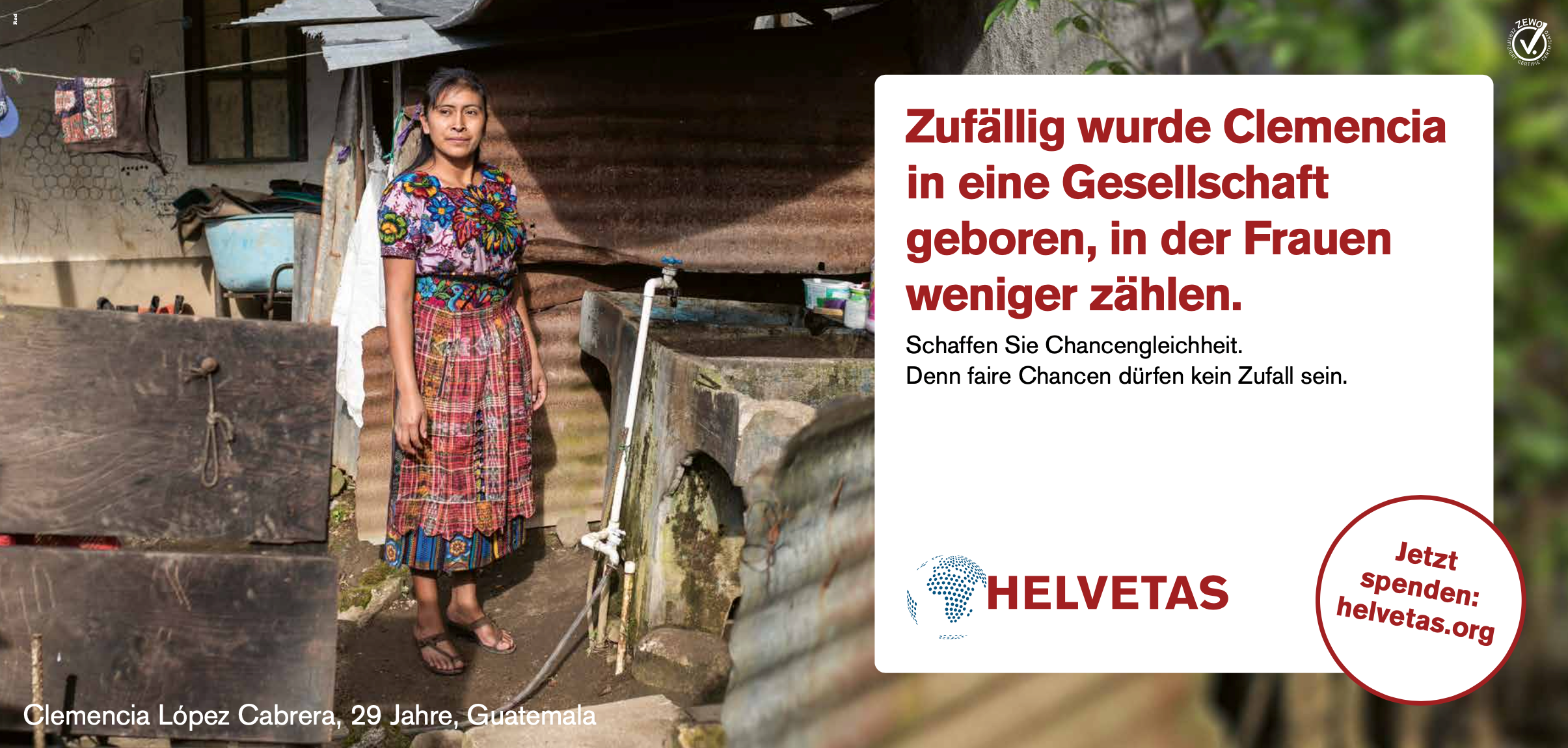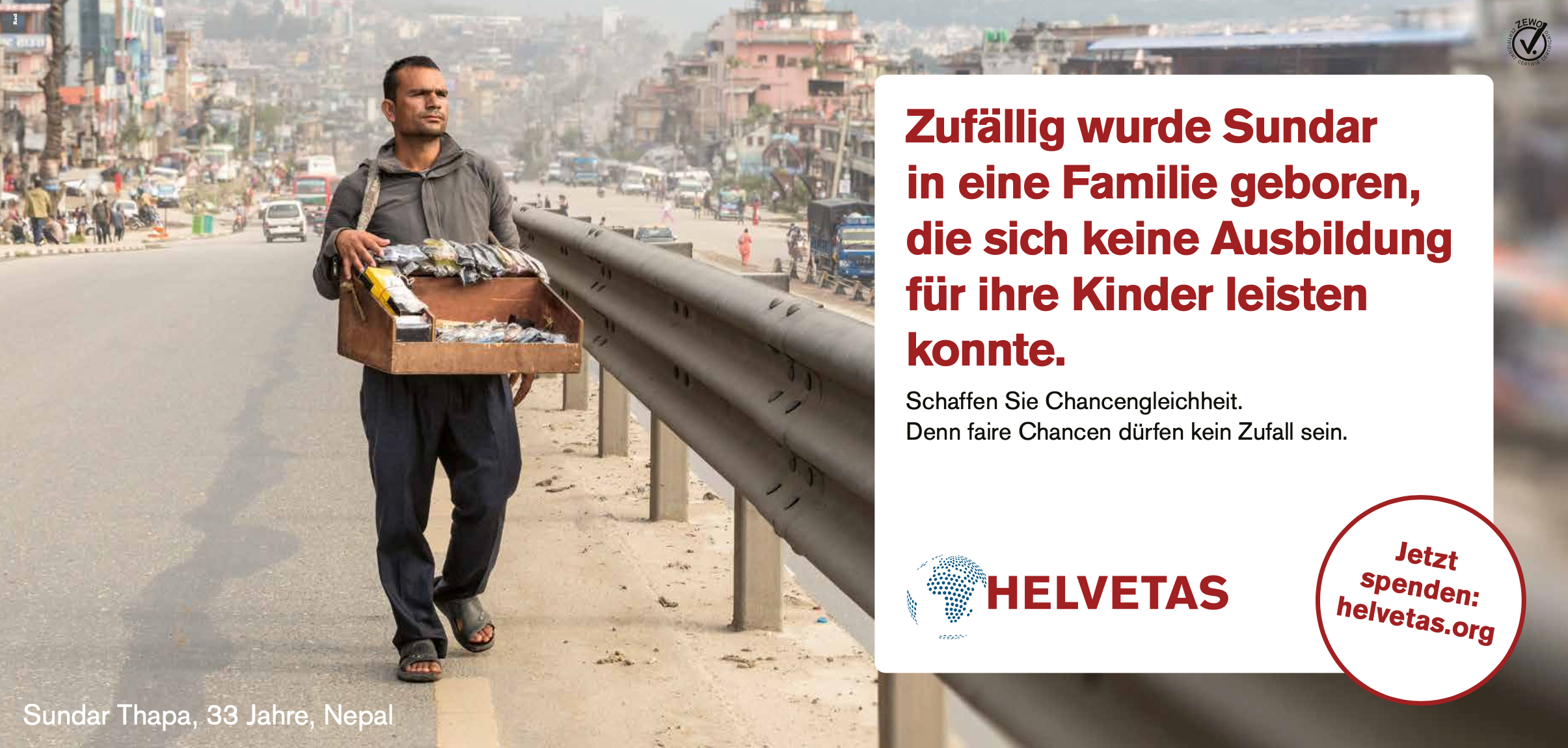 Nicht überall sind die Voraussetzungen für ein selbstbestimmtes, menschenwürdiges Leben in Sicherheit gegeben. Dass alle Menschen gleiche Chancen haben, ist denn auch das grosse uneingelöste Versprechen der modernen Gesellschaft. Diese Ungerechtigkeit will Helvetas, die Schweizer Organisation für Entwicklungszusammenarbeit und Humanitäre Hilfe, vor Augen führen. Hunderte von mehrheitlich einheimischen Helvetas-Mitarbeitenden in 30 Ländern erleben in ihrer Arbeit tagtäglich, wie benachteiligte Menschen unter sehr schwierigen Bedingungen unermüdlich dafür kämpfen, ihre Perspektiven zu verbessern – und dass der Schritt hin zu einer gerechteren Welt möglich ist. Die neue Helvetas-Kampagne zeigt, warum es dafür das Engagement aller braucht.
