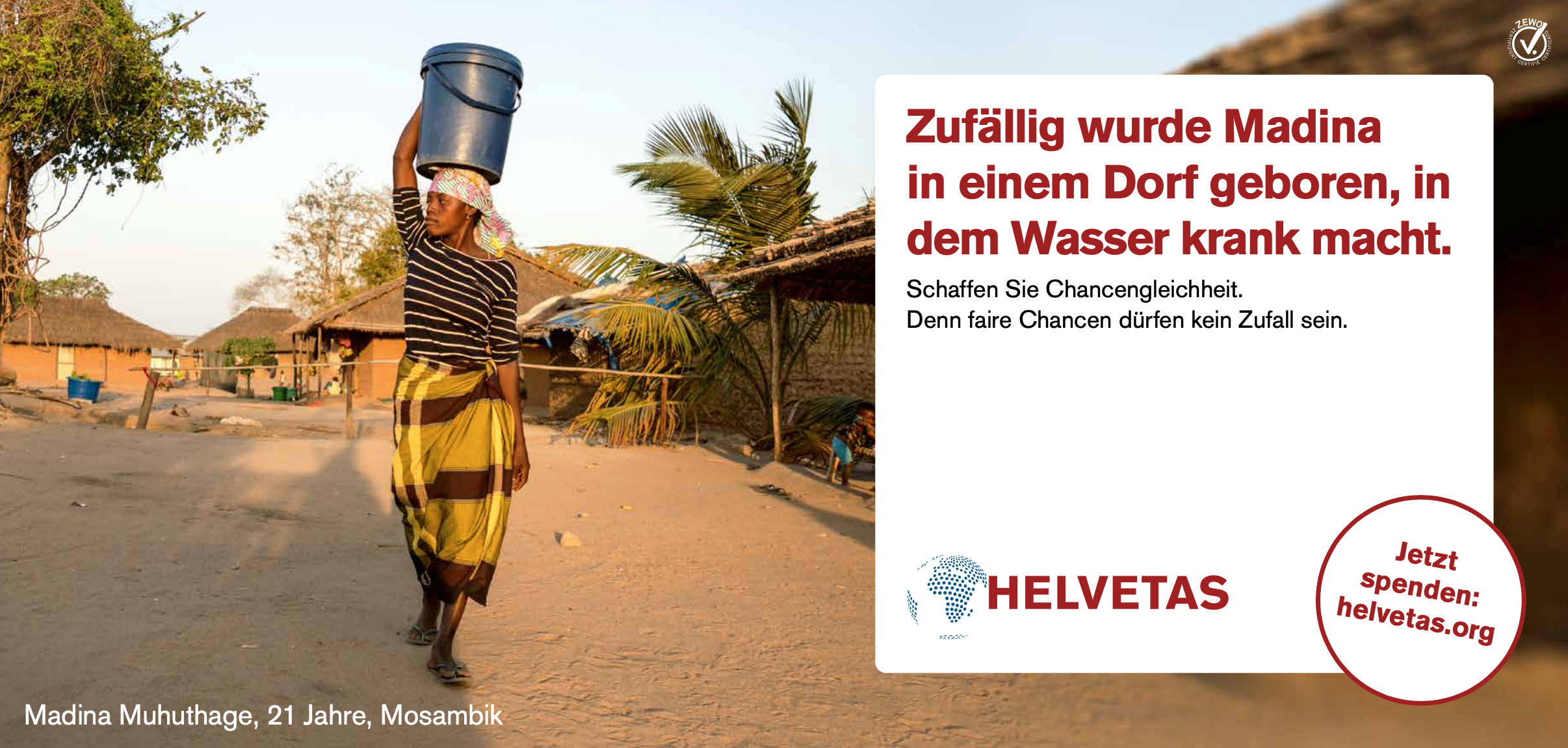Mit ihrer neuen Kampagne porträtiert die Schweizer NGO Helvetas drei Menschen aus drei Kontinenten, die dort, wo sie zufällig geboren sind, kein sauberes Wasser, keine Ausbildung und kein Mitspracherecht haben. Helvetas setzt sich mit Hilfe zur Selbsthilfe für Menschen wie sie ein. Denn faire Chancen dürfen kein Zufall sein.