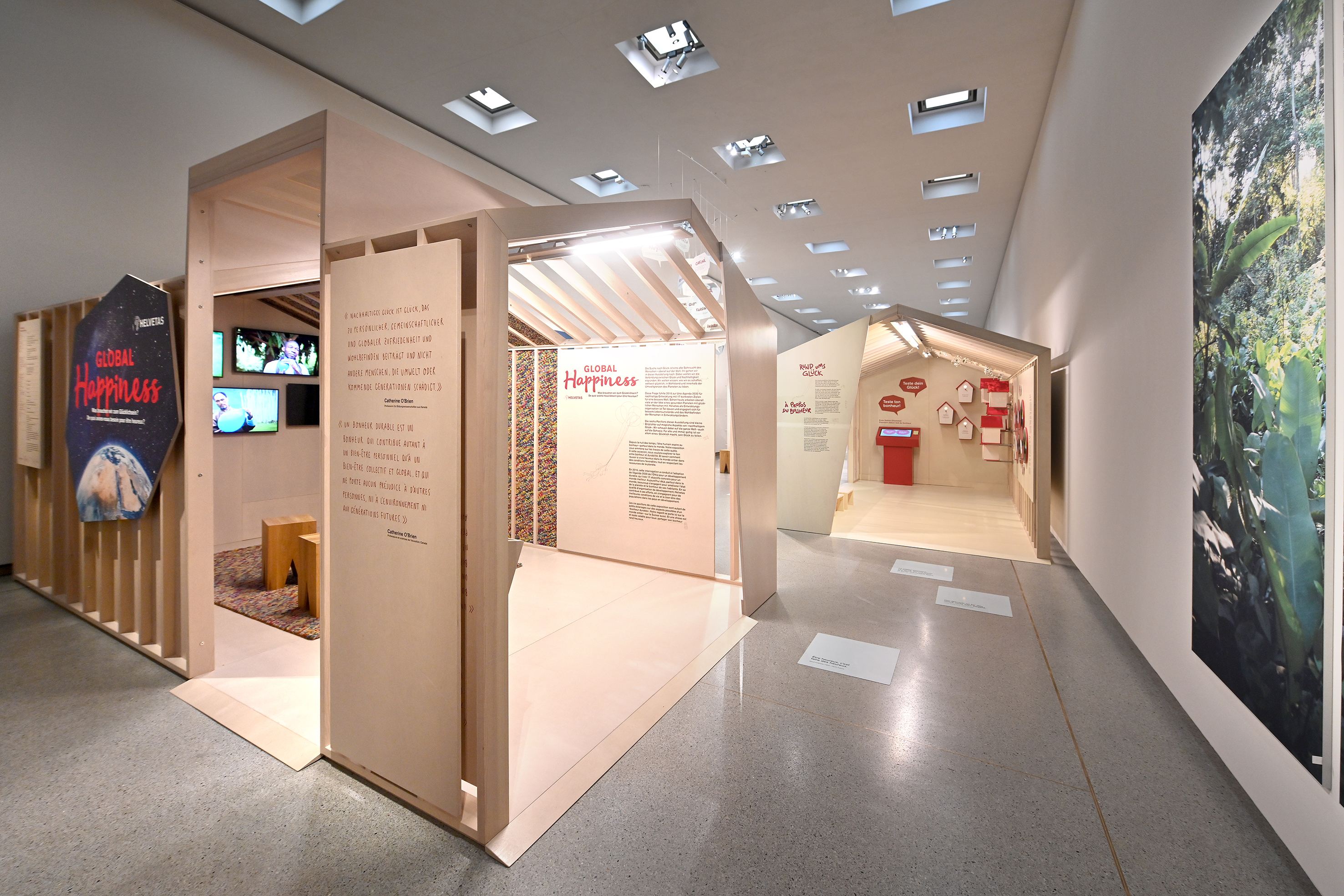 Was macht uns glücklich? Und wie können wir alle zufrieden auf einem Planeten mit begrenzten Ressourcen leben? Die erfolgreiche Ausstellung der Schweizer Entwicklungsorganisation Helvetas nimmt eine der drängendsten Fragen unserer Zeit auf. Sie lädt die Besucherinnen und Besucher auf eine interaktive und multimediale Entdeckungsreise nach dem nachhaltigen Glück ein. Damit verbindet Helvetas das Nachdenken über Glück und Zufriedenheit mit den globalen UNO-Zielen für eine nachhaltige Entwicklung – auf spielerische, innovative Weise. GLOBAL HAPPINESS ist unterhaltsam und informativ zugleich.