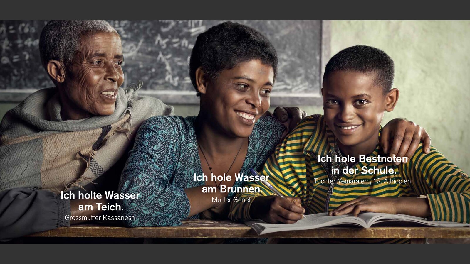 Sahilemariam Shebabaw ist eines der Gesichter der aktuellen Helvetas-Generationenkampagne. Vielleicht sind Sie der jungen Frau aus Äthiopien schon auf Plakatwänden in verschiedenen Schweizer Städten begegnet. Sahilemariam hat vor zwei Jahren mit ihrer Mutter und Grossmutter beim Fotoshooting mitgemacht. Das Plakatsujet entlockt der heute 20-Jährigen ein Lächeln. «Da sah ich aus wie ein Junge», sagt sie. «Damals gefiel mir das.»
