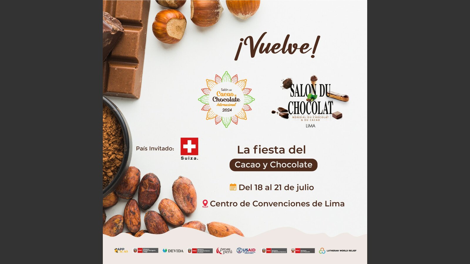Perú se alista para una nueva edición del Salón del Cacao y Chocolate. El encuentro se realizará del 18 al 21 de julio en el Centro de Convenciones de Lima. Para este 2024, se espera contar con la asistencia de más de 200 expositores. Además, Suiza será el país invitado de honor.