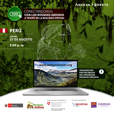 HELVETAS Perú, en el marco del PBA, está organizando una serie de Conversatorios denominados “Conectándonos con los bosques andinos a través de la realidad virtual”, que busca generar un espacio de intercambio de aprendizajes e identificar oportunidades en el uso de la plataforma en el ámbito educativo, tanto universitaria como escolar, la gestión de los bosques en comunidades y mancomunidades, y en la incidencia política en espacios locales, regionales y globales.