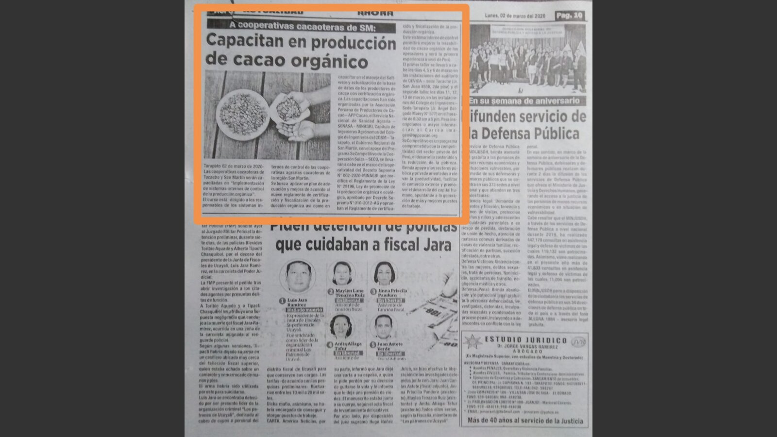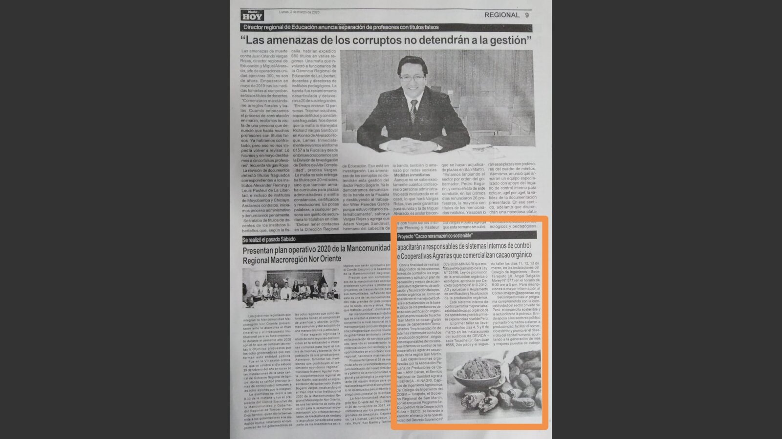 Las capacitaciones organizadas por la Asociación Peruana de Productores de Cacao (APP Cacao), el Servicio Nacional de Sanidad Agraria (SENASA - MINAGRI), Capítulo de Ingenieros Agrónomos del Colegio de Ingenieros del CDSM – Tarapoto, el Gobierno Regional de San Martín, con el apoyo del Programa SeCompetitivo, con el apoyo de la Cooperación Suiza SECO y facilitado por Helvetas Perú, se llevan a cabo en el marco de la operatividad del Decreto Supremo N° 002-2020-MINAGRI que modifica el Reglamento de la Ley N° 29196, Ley de promoción de la producción orgánica o ecológica, aprobado por Decreto Supremo N° 010-2012-AG y aprueban el Reglamento de certificación y fiscalización de la producción orgánica.