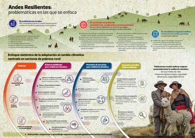 El proyecto regional Andes Resilientes al Cambio Climático busca contribuir en el fortalecimiento y articulación de las capacidades de actores públicos y privados para proveer servicios orientados a mejorar la resiliencia y la capacidad de adaptación al cambio climático, de poblaciones rurales andinas en pobreza y vulnerabilidad hacia la mejora de su seguridad alimentaria y seguridad hídrica.