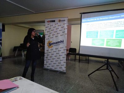 Este fue el escenario perfecto para que el Proyecto Pachayatiña/Pachayacha expusieran sobre los avances en la interfaz de usuarios entre SENAMHI Perú, como generadora de información climática, y las diferentes instituciones y organizaciones que usan, procesan y generan nueva información para sus fines.
