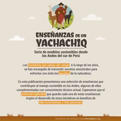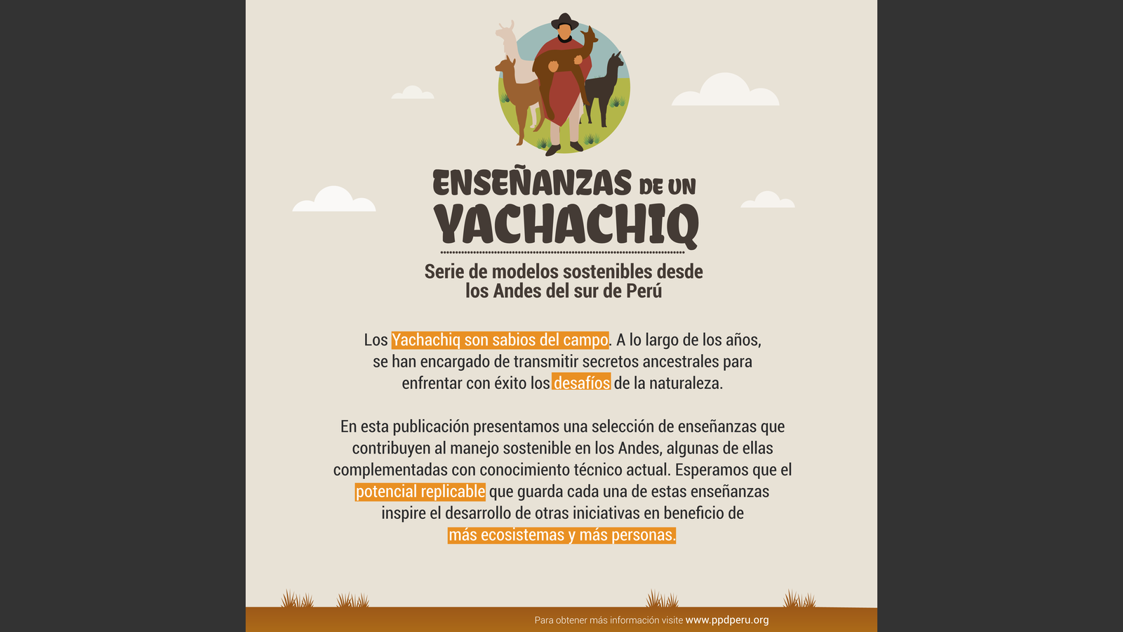 - Los modelos sostenibles «Enseñanzas de un Yachachiq» son hojas de ruta inspiradas en las prácticas innovadoras que implementaron los cerca de 50 proyectos comunitarios del PPD Perú para alcanzar sus objetivos.