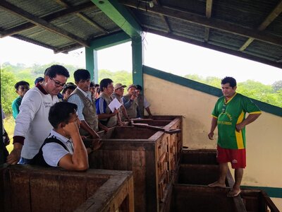 Mucho del conocimiento que se tiene en el mundo de la producción de cacao, radica no solo de avances científicos o nuevas tecnologías; sino en como estás han sido aplicadas en campo, en conocer experiencias exitosas, o no, que permitirán aprender de los errores y los aciertos. Es por ello, como parte del Proyecto Cacao y Plátano se organizó una pasantía de los productores de cacao de Imaza en las instalaciones de la Central de Productores Agropecuarios de Amazonas (CEPROAA) y la Asociación de Productores Cacaoteros y Cafetaleros del Amazonas (APROCAM).