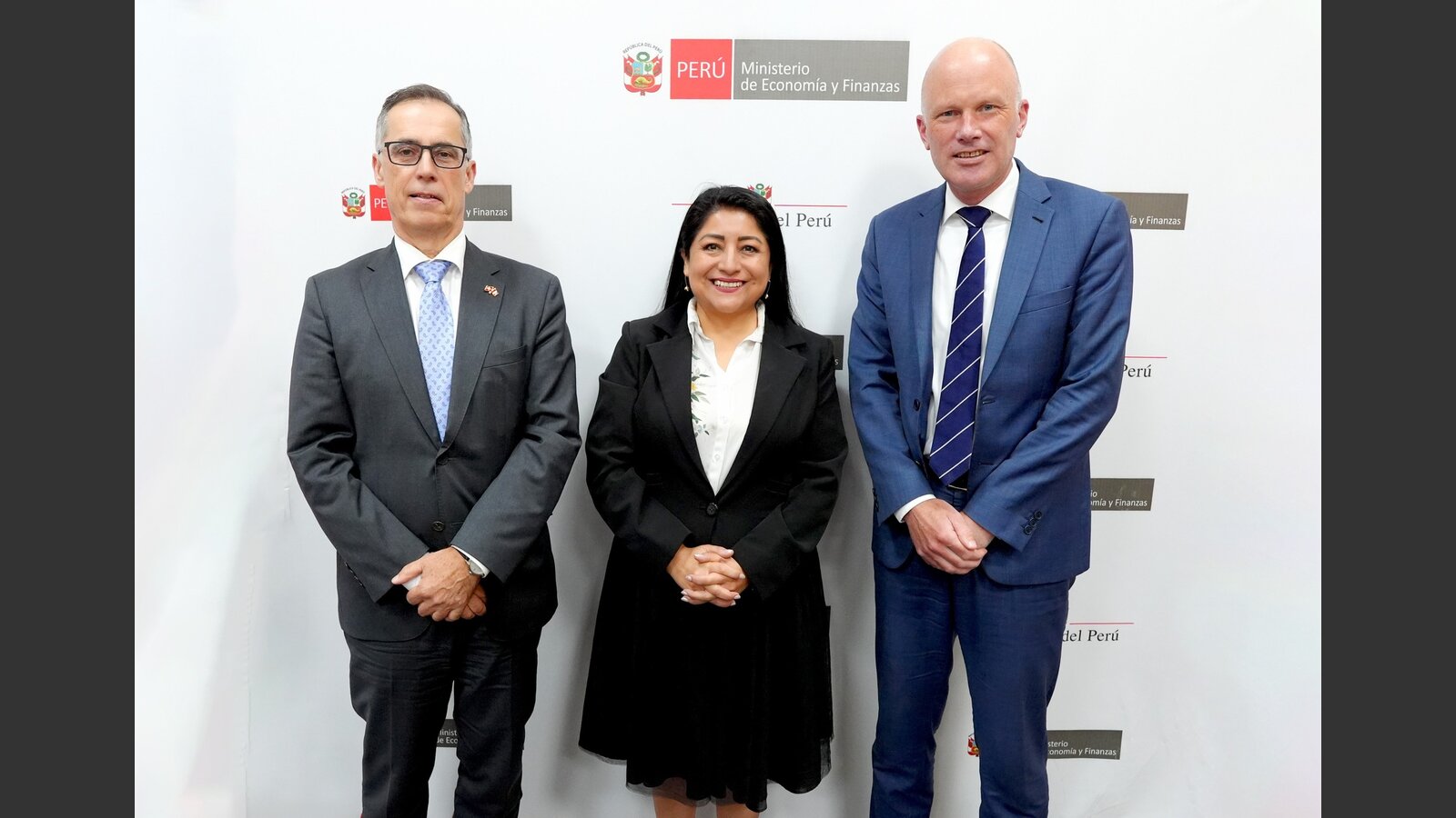 La ministra de Economía y Finanzas, Denisse Miralles, recibió a la misión de monitoreo de la Organización para la Cooperación y el Desarrollo Económicos (OCDE), liderada por Andrew Robert Blazey, junto al embajador de Suiza en el Perú, Paul Garnier. También participaron el viceministro de Hacienda, Rodolfo Acuña; el viceministro de Economía, Gerardo López; así como otros altos funcionarios del MEF.