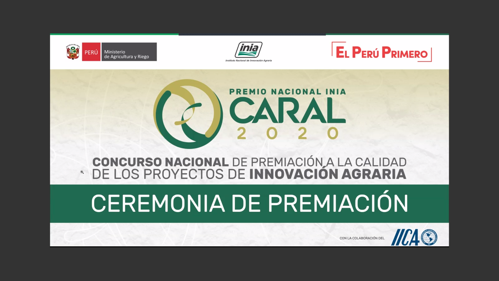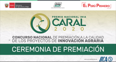 Ayer, 25 de junio 2020, se realizó de la ceremonia de Premiación del Concurso Nacional INIA - Caral 2020, cuyo objetivo es el promover la innovación agraria en el Perú a través de la difusión y premiación de casos exitosos de innovaciones tecnológicas, organizacionales e institucionales, y comerciales; así como, generar un cambio en la calidad de vida de los agricultores.