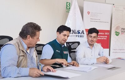 La firma del convenio se realizó en la ciudad de Tarapoto y contó con la participación de Lenin Torres, director encargado del SENASA; Massimo Bloch, director de la Cooperación Económica de Suiza en el Perú; y Richard Haep, director de HELVETAS Perú. Durante el evento se destacó la importancia de la articulación entre el sector público y la cooperación internacional para consolidar una producción de cacao competitiva y alineada con los estándares internacionales.