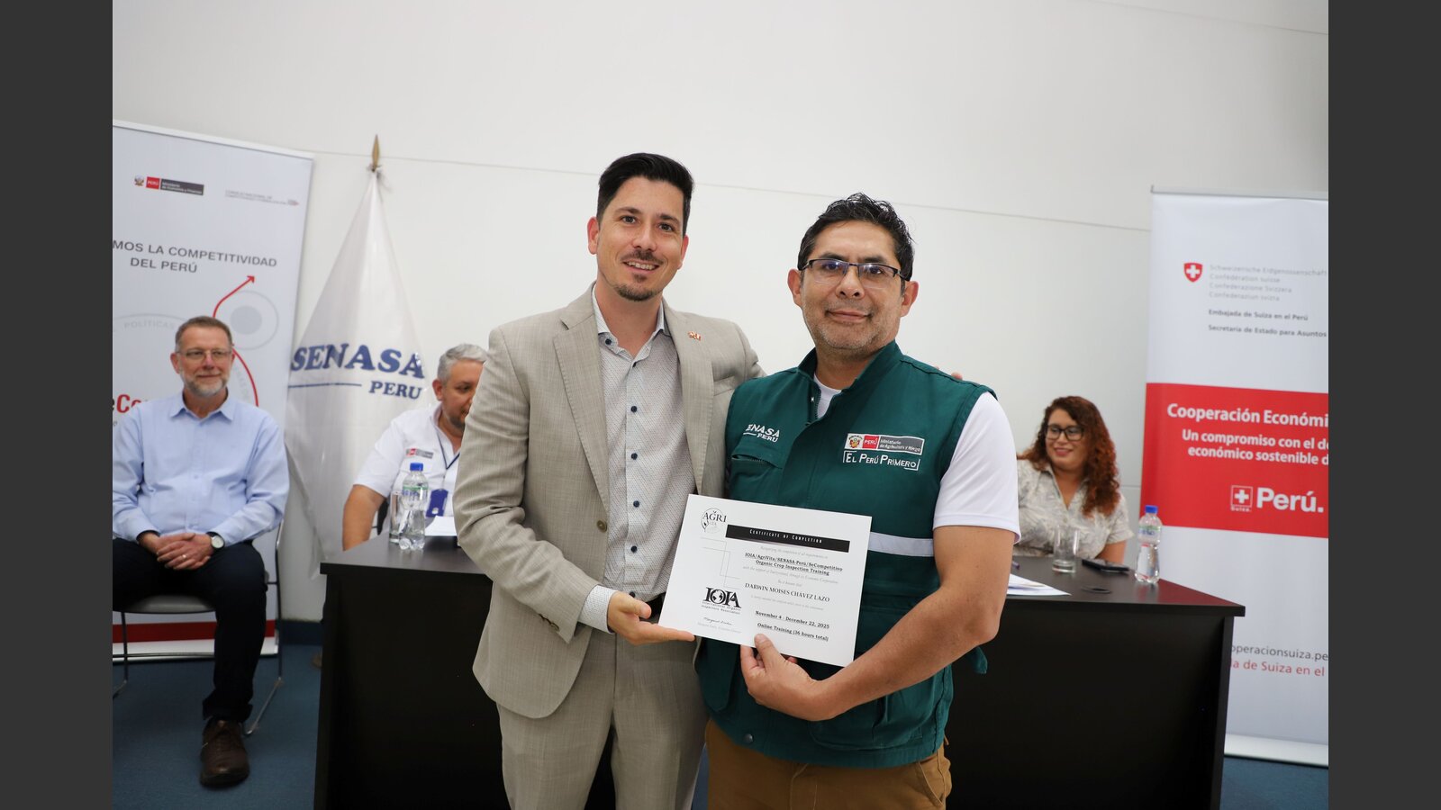 Por su parte, Massimo Bloch, director de la Cooperación Económica Suiza de la Embajada de Suiza en el Perú, resaltó que “El fortalecimiento del Sistema Nacional de Control de la Producción Orgánica es una inversión estratégica en institucionalidad. Desde Suiza, a través de su Cooperación Económica, creemos que fortalecer las capacidades técnicas de los inspectores del SENASA no solo mejora la calidad de la supervisión, sino que también refuerza la credibilidad del sector orgánico y contribuye a un desarrollo económico más sostenible e inclusivo.”