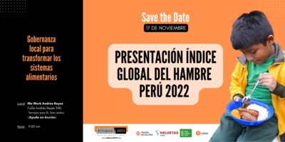 Desde el año 2019, los miembros de la Alliance 2015 en el Perú, realizan cada año la presentación del Índice Global de Hambre (IGH) y del Informe IGH Perú. A partir del éxito logrado en esta actividad, los miembros presentes de la Alianza 2015 en el Perú (Ayuda en Acción, Cesvi, Helvetas Perú y Welthungerhilfe) han ratificado su interés y compromiso para elaborar nuevamente en el año 2022 el informe para Perú y presentarlo junto con el Informe Global.