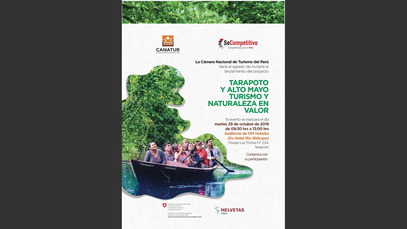 Se dio a conocer el proyecto ‘Tarapoto y Alto Mayo: Turismo y Naturaleza en Valor’, ejecutado por la Cámara Nacional de Turismo (CANATUR) con el cofinanciamiento del Programa SeCompetitivo de la Cooperación Suiza SECO, facilitado por Helvetas Perú.