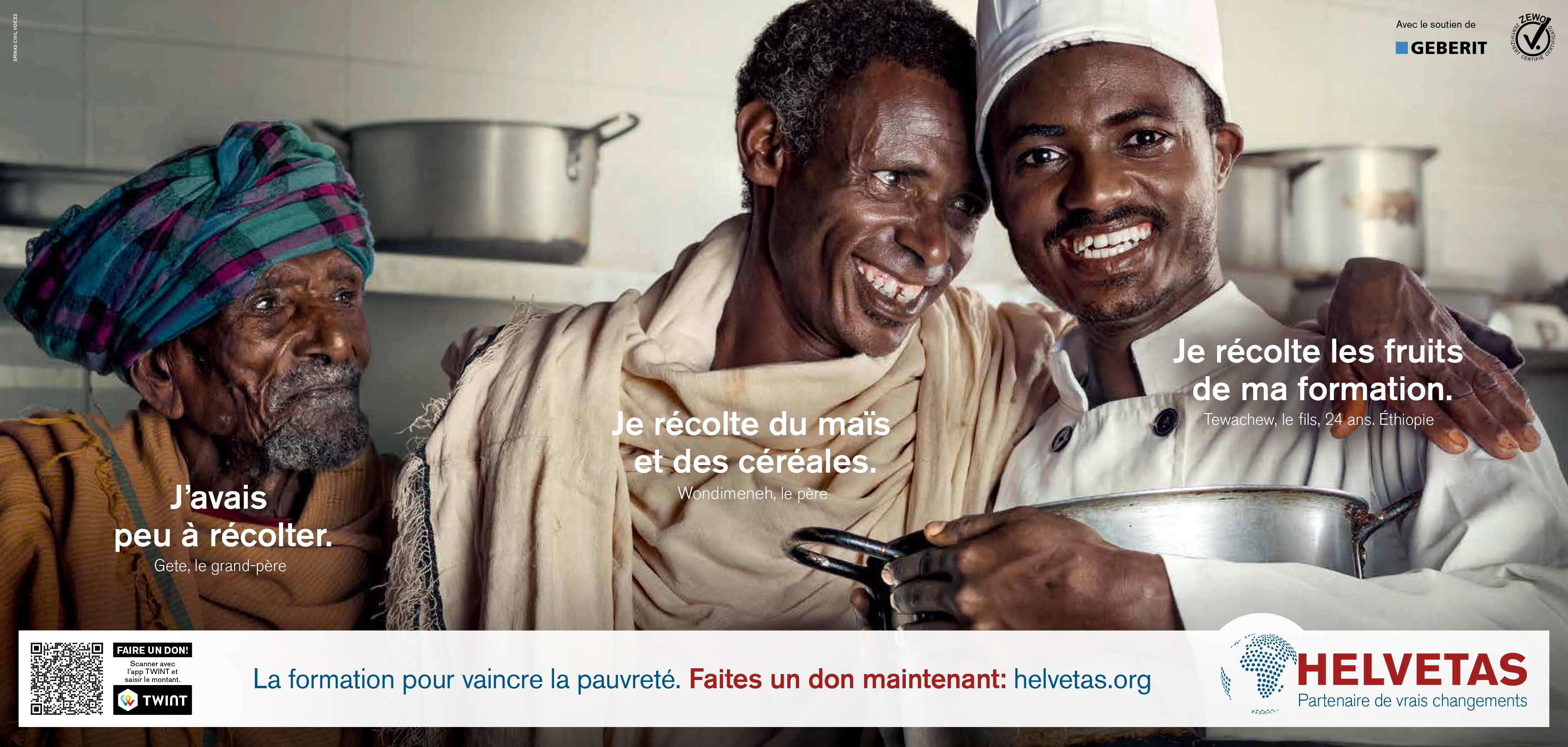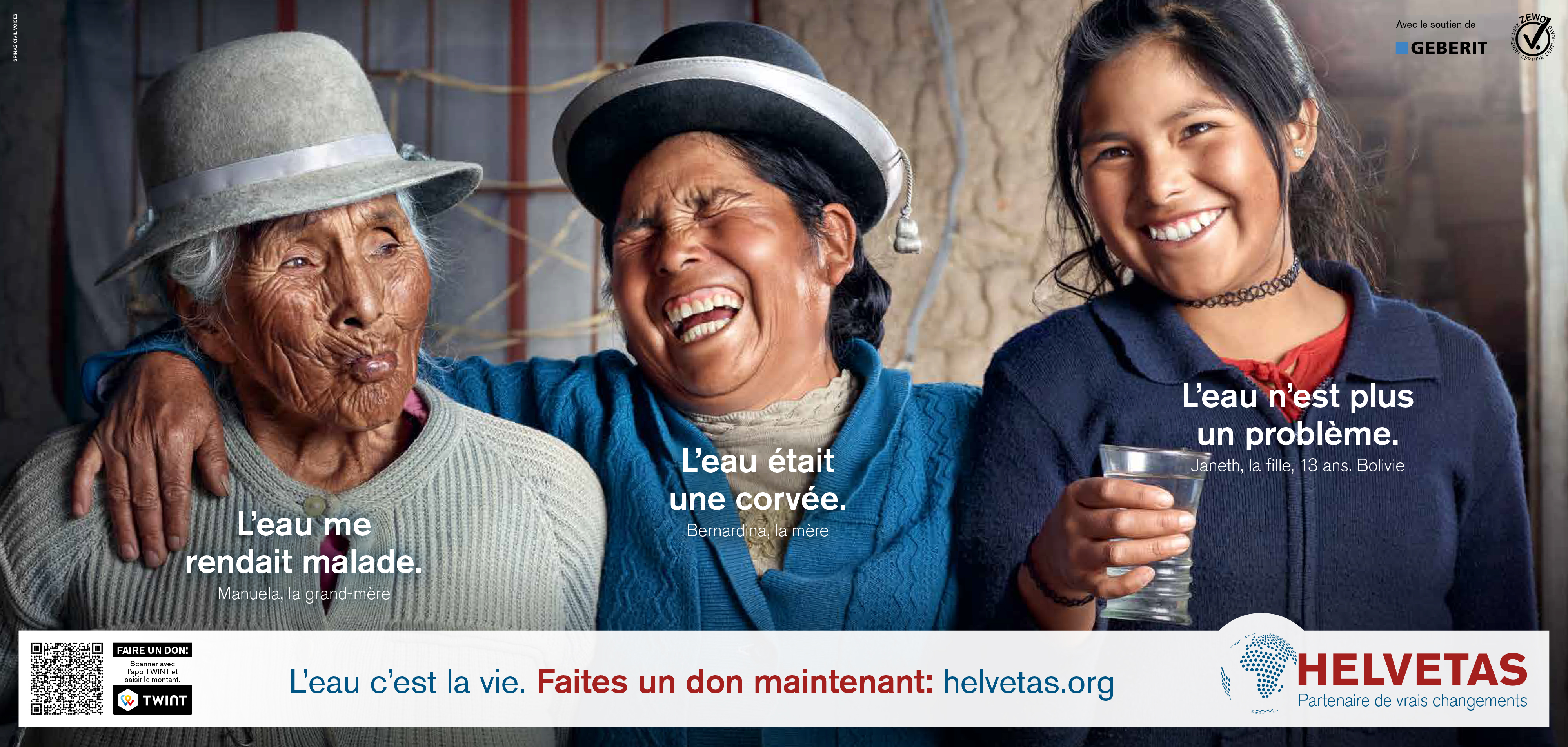 L’histoire de ces familles rappelle que la vie de nombreuses personnes a changé pour le mieux. Depuis 2000, le taux de mortalité des enfants de moins de 5 ans a diminué de moitié et plus d’’un milliard de personnes sont sorties de la pauvreté au cours des 25 dernières années. Par sa campagne, Helvetas veut sensibiliser l’opinion publique à ces succès qui ont été rendus possibles grâce à la solidarité de la population en Suisse.