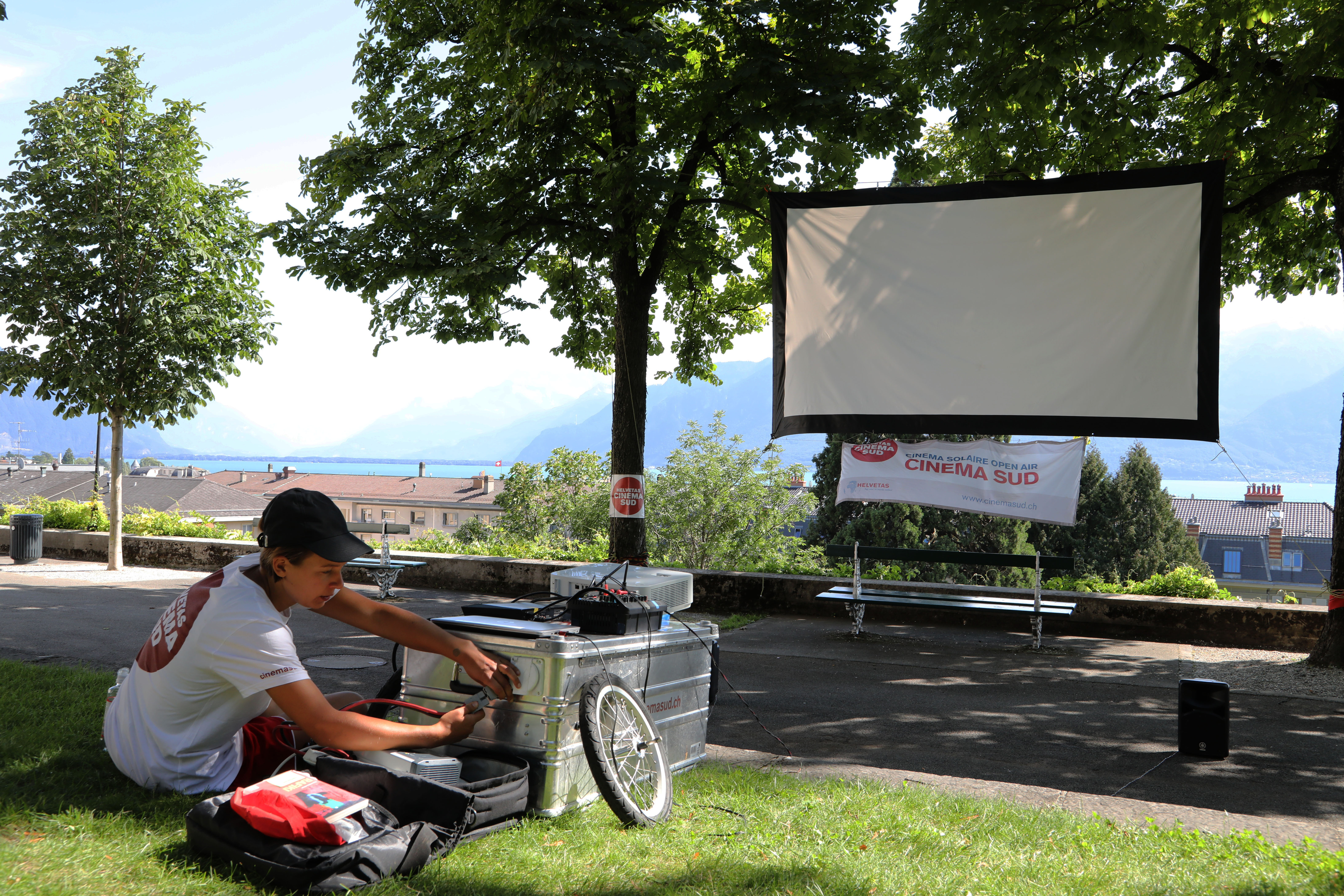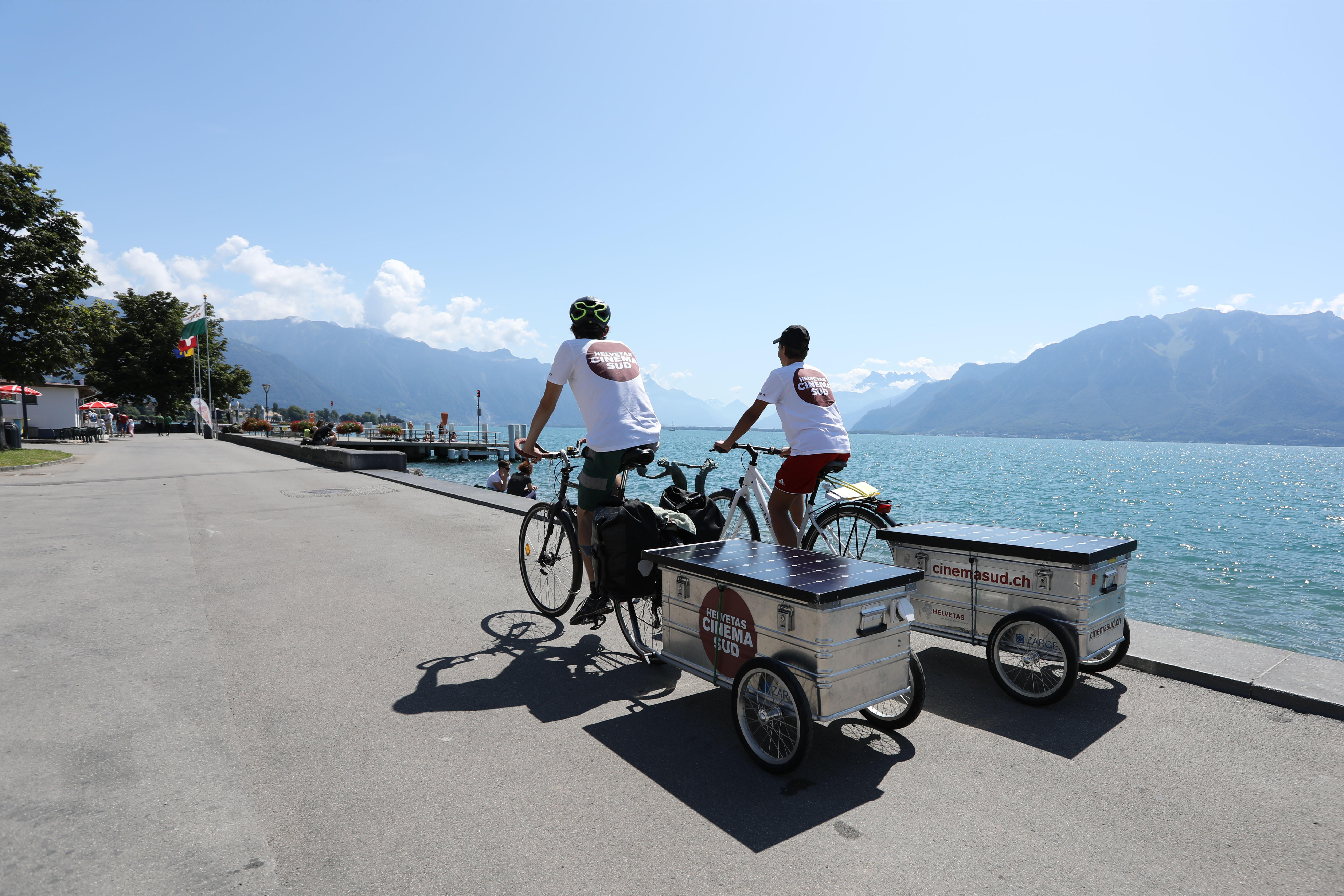 Le cinéma solaire, itinérant et solidaire d’Helvetas reprend du service cet été! Les cyclistes-projectionnistes du Cinéma Sud se rendront dans 20 villes romandes, du 1er juillet au 6 septembre 2021. Ils parcourront plus de 700 kilomètres à la seule force de leurs mollets pour proposer des projections écologiques au public romand. À la tombée de la nuit, ils projetteront – gratuitement et grâce à l’énergie solaire – des films en provenance de pays du Sud.